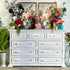 This charming cottage-chic style dresser is perfect for any bedroom! Tuck away your clothes in this darling dresser. Finished in our whisper white, she is beautifully neutral for any color palette. Pairs beautifully with the rest of our Charlotte Collection! It boasts knobs and 9 drawers and plenty of storage space!