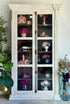 Introducing our majestic Claudia Vitrine, a testament to opulent design and grand style. Finished in our favorite White Wheat finish- a beautifully textured swirly blend of whites, creams, browns, beige with a Sparrow interior. The grand molding on top and bottom accentuates its regal presence, while the long glass paneled doors, adorned with exquisite hardware, unveil its inner treasures. With 6 fixed shelves, it offers ample space to showcase your cherished collectibles or fine wares. Elevate your space with this masterpiece, where cultural heritage meets modern sophistication in perfect harmony. Experience the art of display and elevate your decor with the captivating grandeur of our 91" high Vitrine.