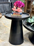 Introducing the Kennedy Side Table, the perfect companion to the Kennedy Coffee Table. With its round design and a stunning inverted top, this side table boasts the same beautiful splayed pedestal base for a cohesive and stylish look. Finished in our handrubbed black finish, it showcases a warm, dramatic tone that complements any space. Compact yet full of character, the Kennedy Side Table adds a touch of elegance and function to any room, making it an ideal accent for living spaces or bedrooms. Perfectly matched yet versatile enough to stand on its own. Price is per table.