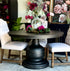 Introducing the Lilly 54" Round Pedestaled Dining Table, an exquisite centerpiece for your dining area. Finished in a sophisticated hand-rubbed black, this table exudes elegance and style. The standout feature is its absolutely unique pedestal, which not only provides robust support but also adds a striking visual element to your dining space. Perfect for intimate gatherings or family meals, the Lilly dining table combines beauty and functionality, making it a must-have addition to your home. Seats 4-6, depending on size of your chairs. Chairs sold separately