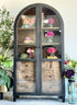 Introducing Melody, your stylish sidekick in showcasing sophistication! This black domed vitrine is a chic spectacle, flaunting a domed top that's all about drama. She comes with our dramatic handrubbed black finish on the outer shell and a rich Sparrow stained interior for a gorgeous contrast. With three shelves to flaunt your treasures and six drawers for secret stashes, Melody is your partner in crime for staying organized and fabulous. Perched on adorable little legs, she's both charming and functional, adding a big touch of charm to your space.