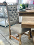 You're going to fall in love with this oversized tufted chair that comes with the most gorgeous deconstructed back. With an extra wide seat for comfort, curvy solid wood legs, tufted back and beautiful deconstructed backside for extra style- this pairs beautifully with any table- but especially our Trestle Table!