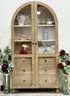 Introducing Melody, your stylish sidekick in showcasing sophistication! This domed vitrine is a chic spectacle, flaunting a domed top that's all about drama. She comes with our warm natural leaning soft Sandstone finish on the outer shell and a soft Dove stained interior for a gorgeous contrast. With three shelves to flaunt your treasures and six drawers for secret stashes, Melody is your partner in crime for staying organized and fabulous. Perched on adorable little legs, she's both charming and functional, adding a big touch of charm to your space.